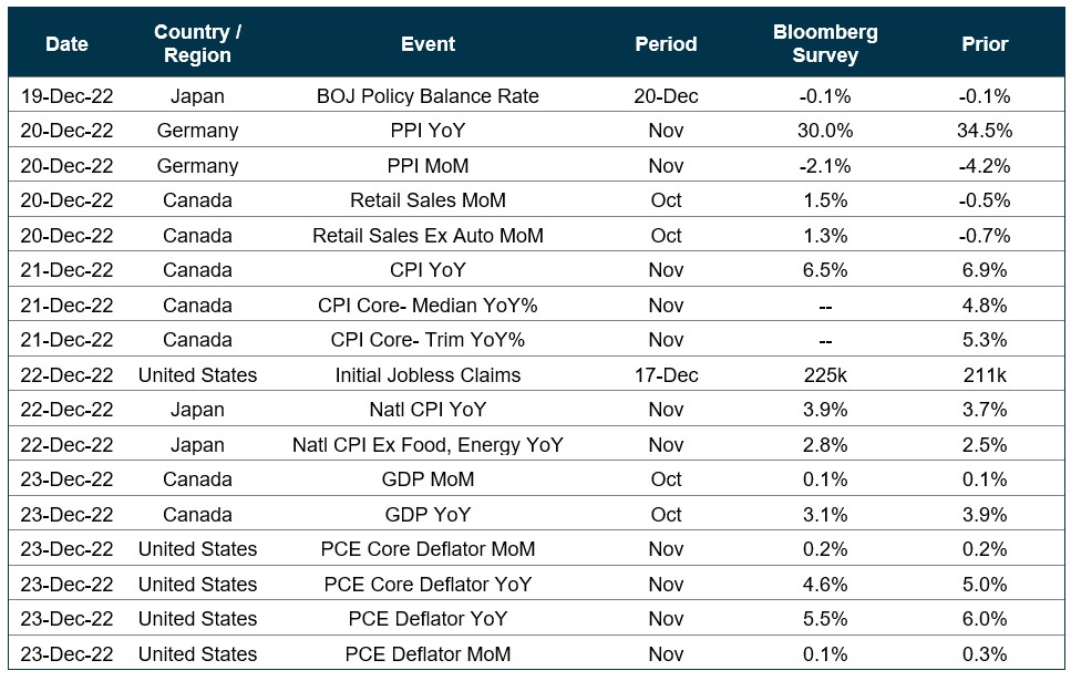 U.S. – CPI (December 13), Central Bank Meeting (December 14), Retail Sales (December 15), PMI (December 16)