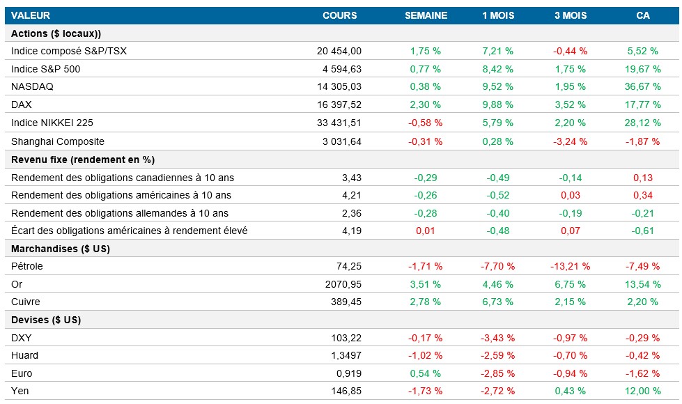 Pouls hebdomadaire des marchés - Semaine se terminant le 1 decembre 2023
