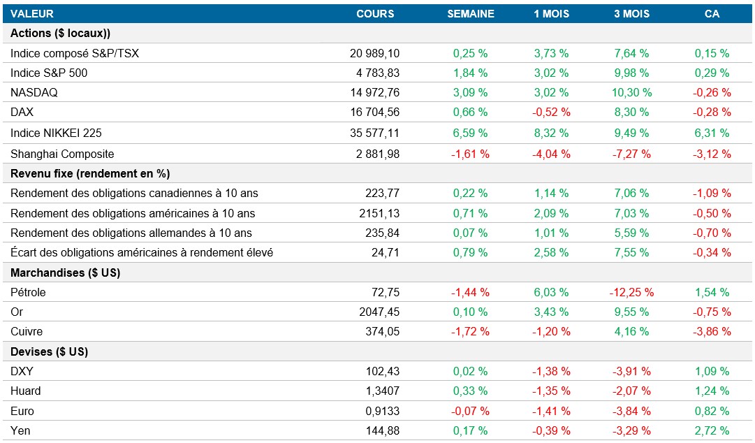 Pouls hebdomadaire des marchés - Semaine se terminant le 12 janvier 2024