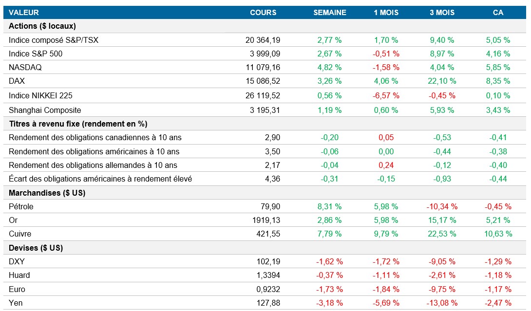 Pouls hebdomadaire des marchés - Semaine se terminant le 13 janvier 2023