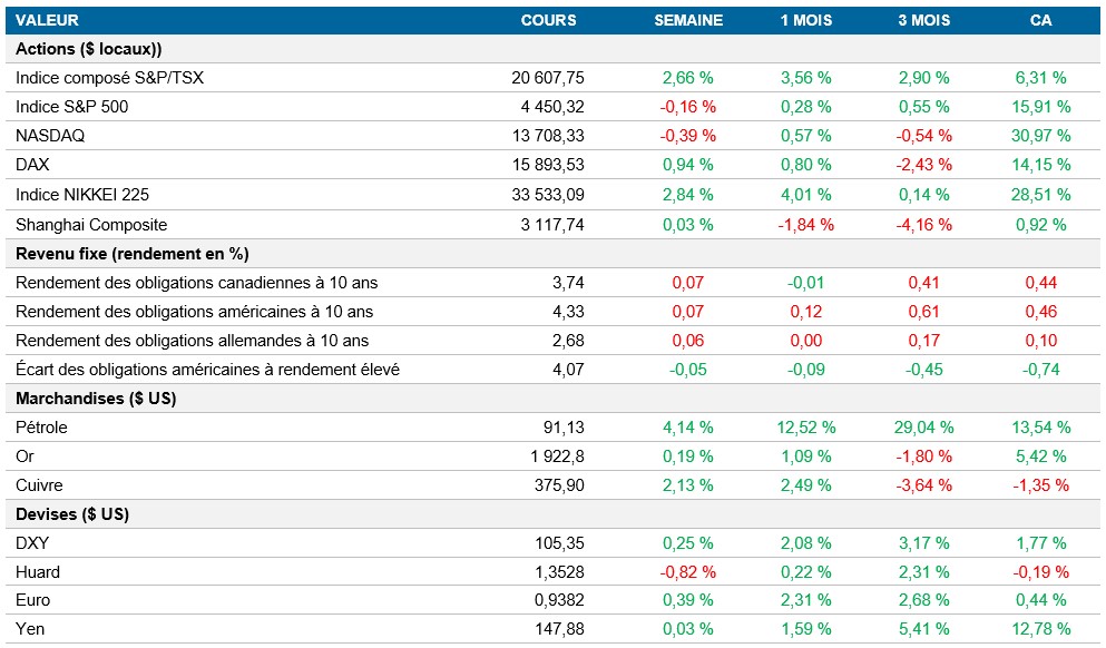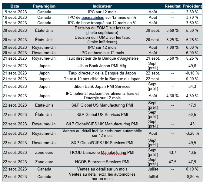 Pouls hebdomadaire des marchés - Semaine se terminant le 15 septembre 2023