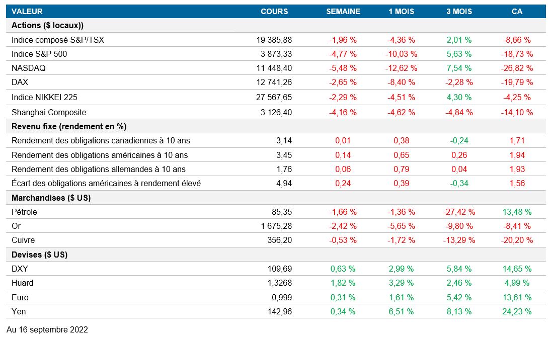Pouls hebdomadaire des marchés - Semaine se terminant le 16 septembre 2022