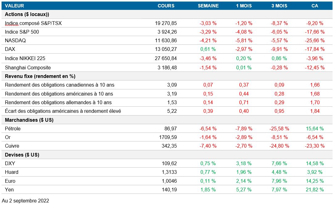 Pouls hebdomadaire des marchés - Semaine se terminant le 2 septembre 2022