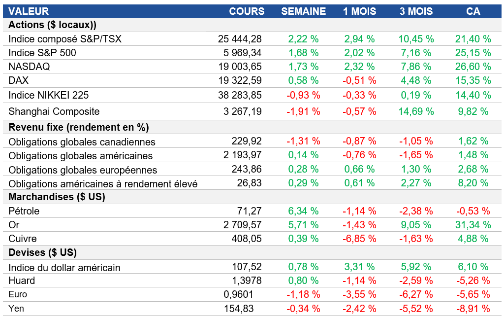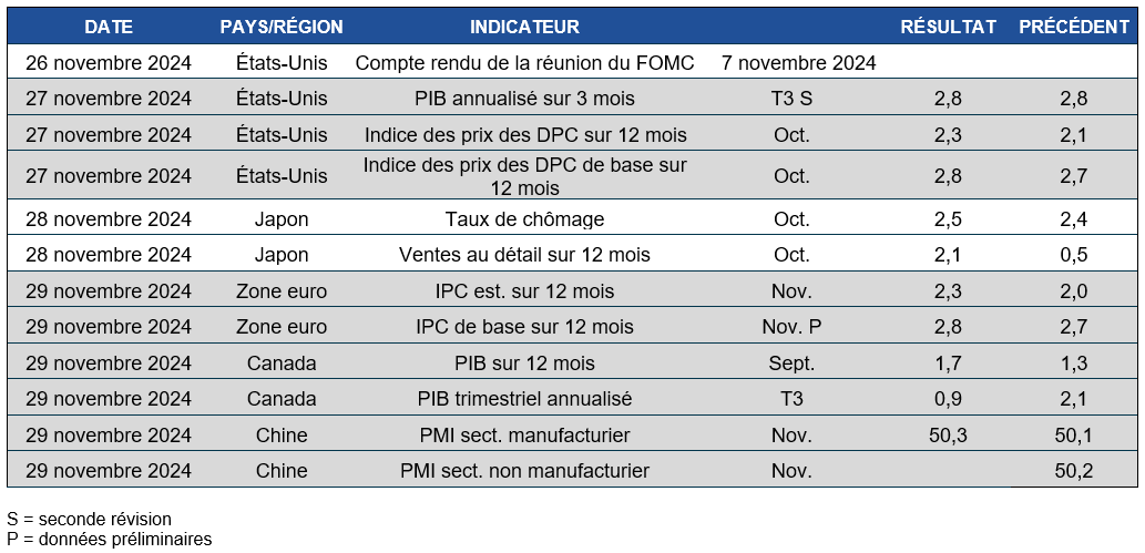 Pouls hebdomadaire des marchés - Semaine se terminant le 22 novembre 2024