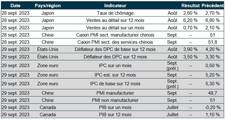 Pouls hebdomadaire des marchés - Semaine se terminant le 22 septembre 2023