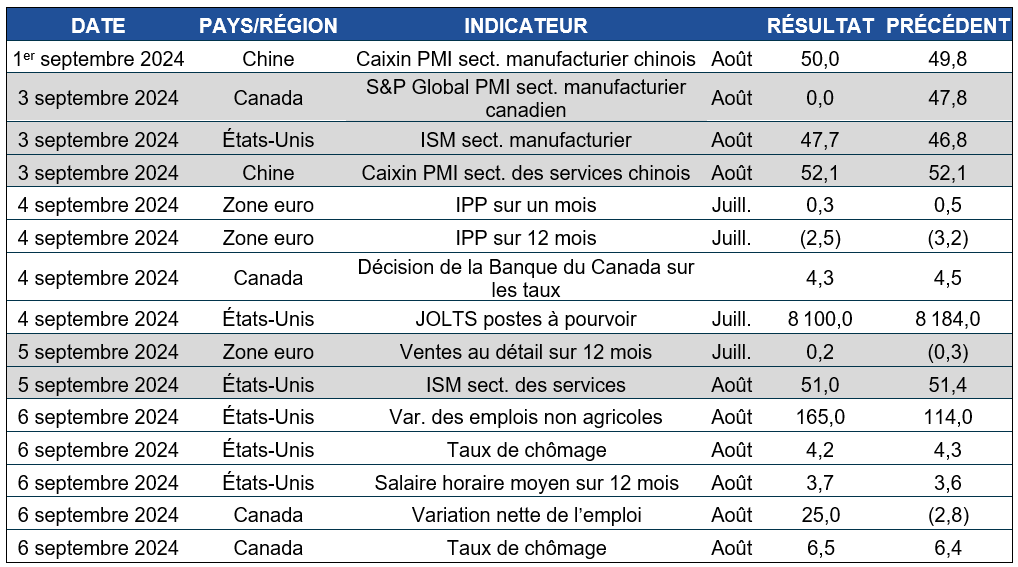 Pouls hebdomadaire des marchés - Semaine se terminant le 30 août 2024