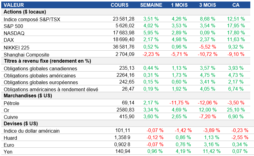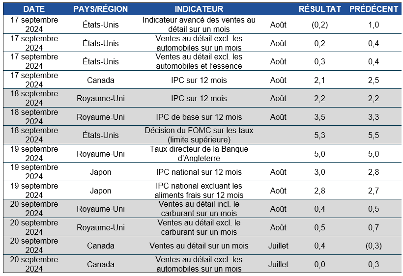 Pouls hebdomadaire des marchés - Semaine se terminant le 13 septembre 2024