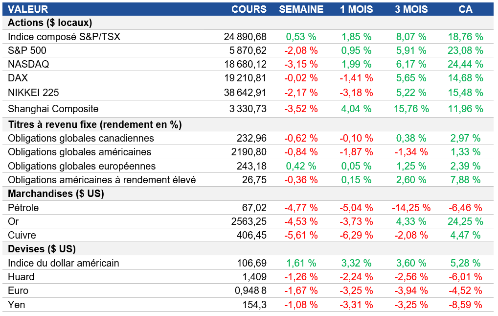 Pouls hebdomadaire des marchés - Semaine se terminant le 15 novembre 2024
