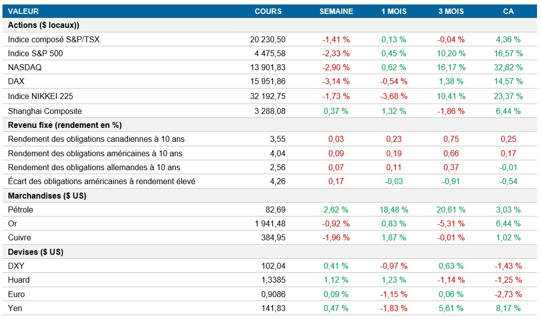 Pouls hebdomadaire des marchés - Semaine se terminant le 4 août 2023