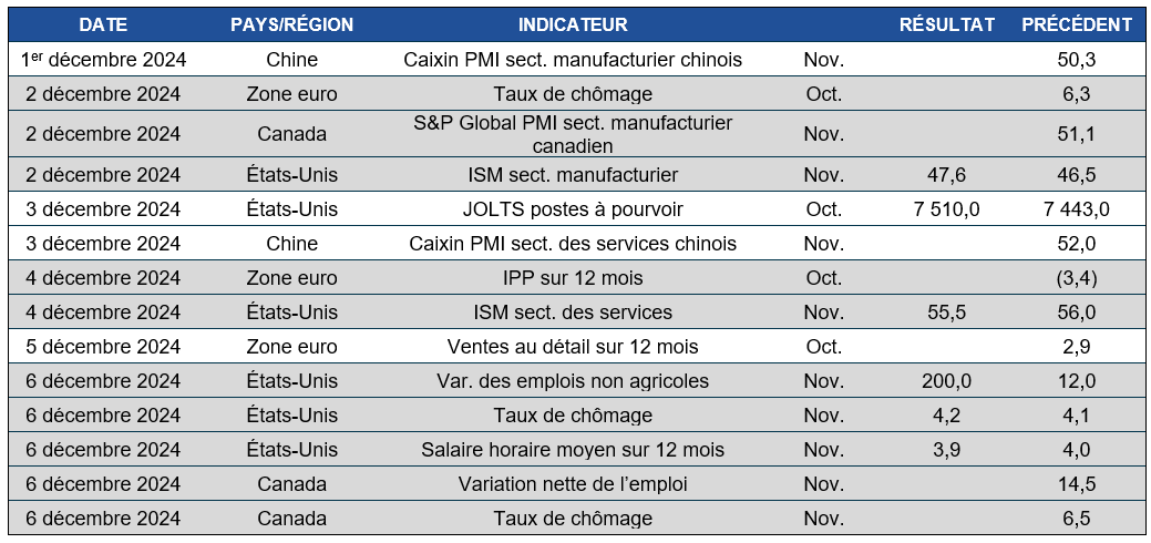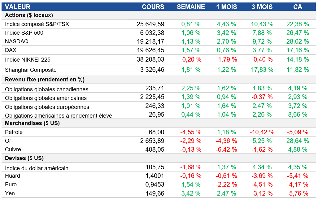 Pouls hebdomadaire des marchés - Semaine se terminant le 29 novembre 2024