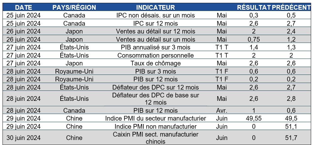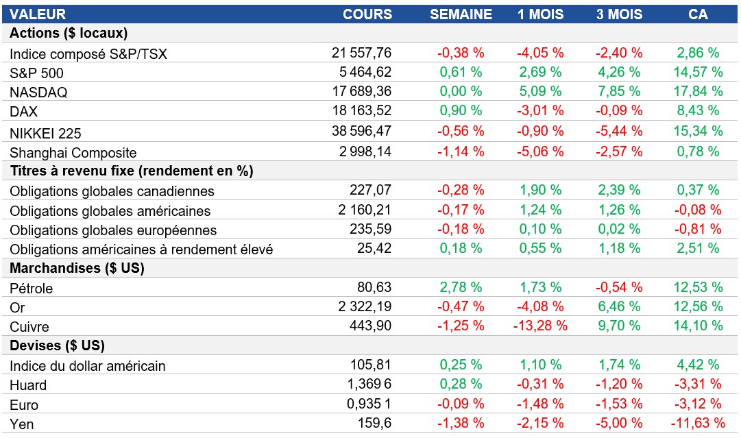 Pouls hebdomadaire des marchés - Semaine se terminant le 21 juin 2024