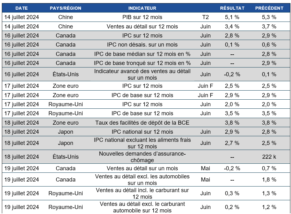 Pouls hebdomadaire des marchés - Semaine se terminant le 12 juillet 2024