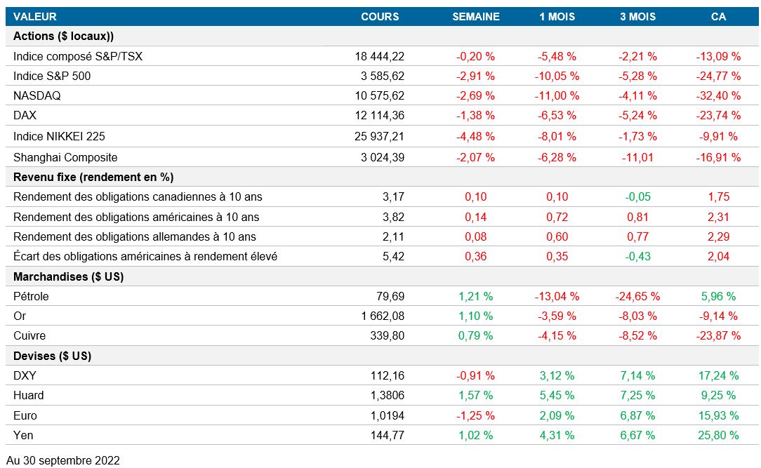 Pouls hebdomadaire des marchés - Semaine se terminant le 30 septembre 2022