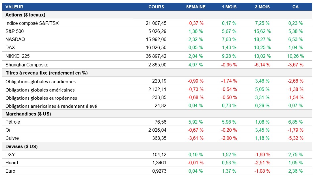 Pouls hebdomadaire des marchés - Semaine se terminant le 9 février 2024